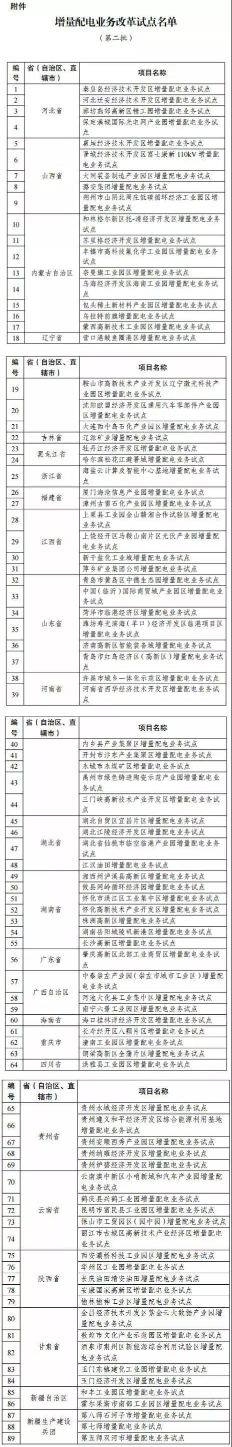 附件:增量配電業務改革試點名單(第二批)