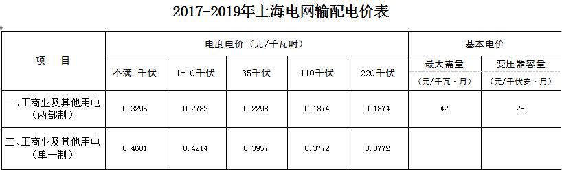 附件:2017-2019年上海電網輸配電價表