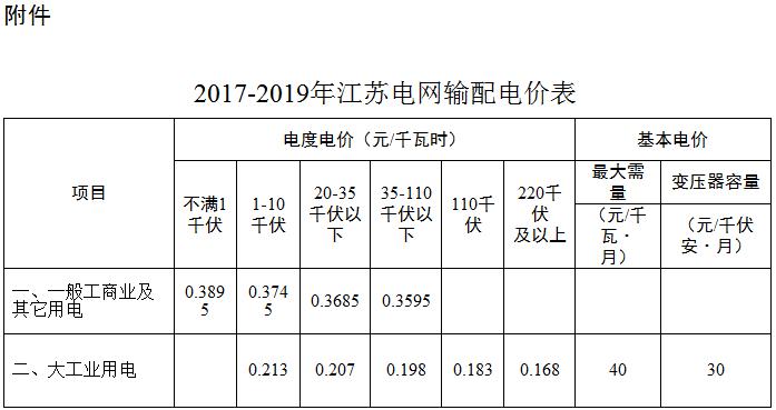 附件:2017-2019年江蘇電網輸配電價表