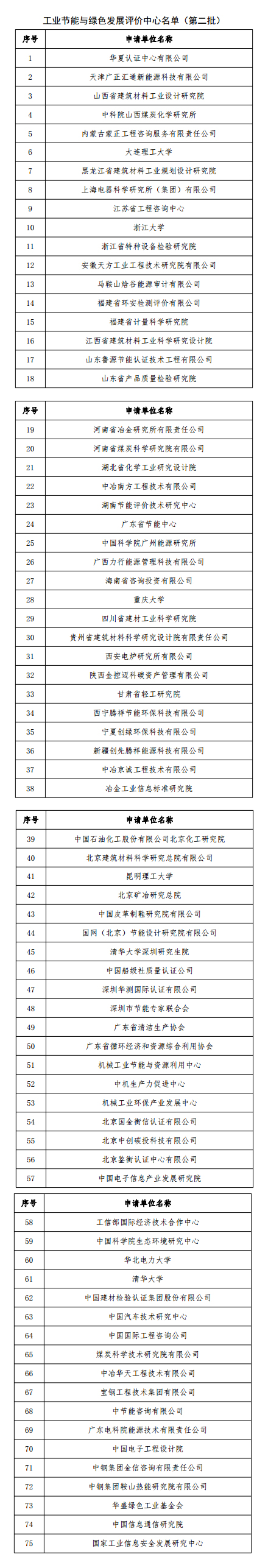 工信部發(fā)布:工業(yè)節(jié)能與綠色發(fā)展評價中心名單(第二批)