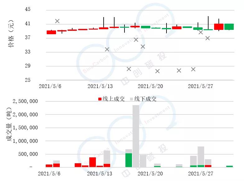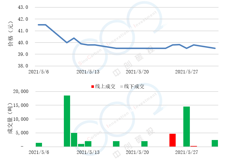 • 線上成交價最低為39.50元,最高為41.50元,平均碳價為39.93元。