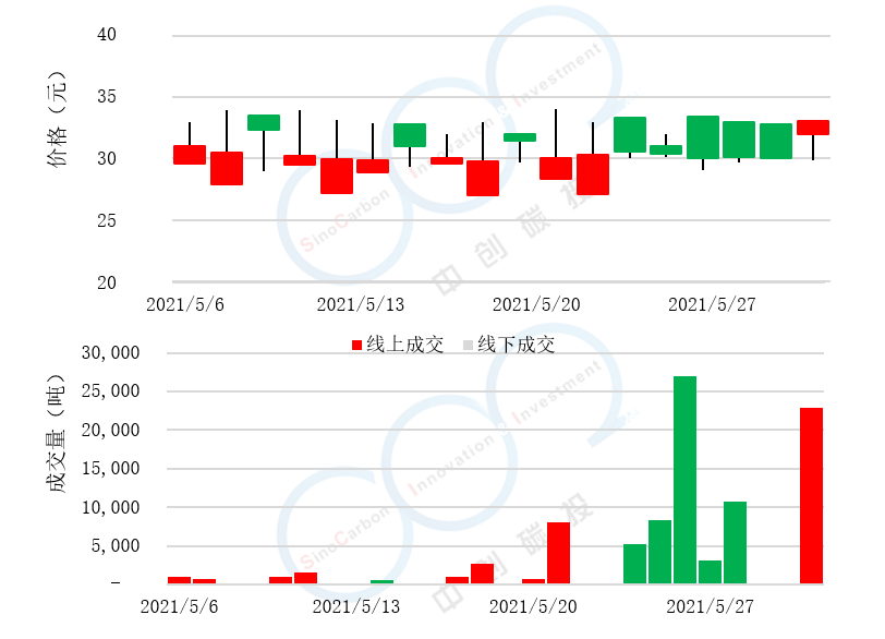 • 線下成交價最低為20.80元,最高為29.15元,平均碳價為24.99元。