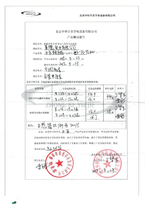 工程竣工后,通過現場讀表,節電達到36.36%,效果明顯。改造工程一方面降低了用電量,減少了電費支出,另一方面保護了節能設備,延長設備壽命,減少維護成本。