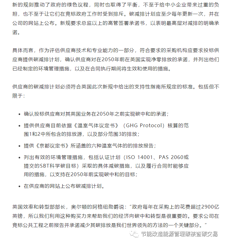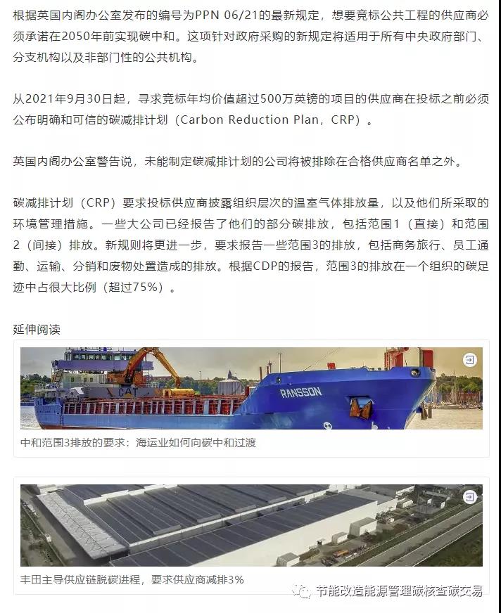 UK新規:企業不承諾碳中和目標將無法參與政府采購項目